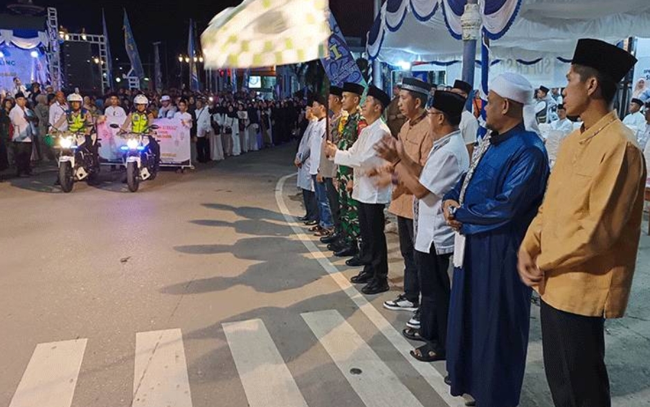 Tampak ribuan warga memenuhi lokasi yang akan dilalui oleh rombongan peserta pawai yang dilepas langsung oleh Pj Bupati Barito Utara Muhlis didampingi Pj sekda, Dandim 1013 Muara Teweh, Kapolres Bariyo Utara, mantan bupati Barito Utara Nadalsyah serta unsur SKPD.