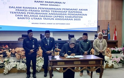 Hal ini ia sampaikan Pj Bupati Indra Gunawan pada Rapat Paripurna IV Masa Sidang I DPRD Barito Utara dalam rangka penyampaian pendapat akhir fraksi-fraksi terhadap Raperda Perubahan APBD 2025, di ruang rapat paripurna DPRD, Jumat (26/9/2025).