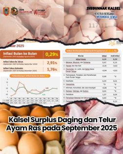 Kalsel Surplus Daging dan Telur Ayam Ras September 2025