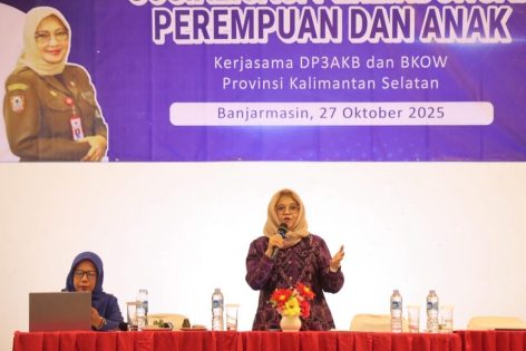 BANJARBARU, suluhbanua.news – Upaya perlindungan perempuan dan anak di Kalimantan Selatan (Kalsel) terus diperkuat melalui kolaborasi berbagai pihak. Salah satunya lewat Sosialisasi Perlindungan Perempuan dan Anak yang digelar oleh Dinas Pemberdayaan Perempuan, Perlindungan Anak dan Keluarga Berencana (DPPPAKB) Provinsi Kalsel bekerja sama dengan Badan Kerjasama Organisasi Wanita (BKOW) Kalsel, di Banjarmasin, Senin (27/10/2025).