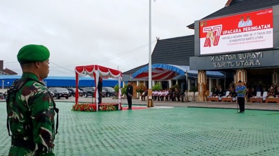 MUARA TEWEH, suluhbanua.news – Bupati Barito Utara, H. Shalahuddin, membacakan amanat Presiden Republik Indonesia Prabowo Subianto dalam upacara peringatan Hari Bela Negara ke-77 yang digelar di halaman Kantor Bupati Barito Utara, Senin (22/12/2025).