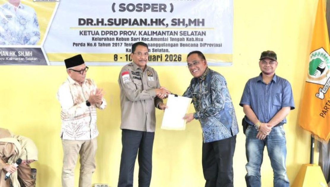 Hulu Sungai Utara KALSEL, suluhbanua.news – Ketua DPRD Kalimantan Selatan (Kalsel) H Supian HK sosialisasikan Peraturan Daerah (Perda) Nomor 6 Tahun 2017 tentang Penanggulangan Bencana di provinsi setempat. (09/01/2026)