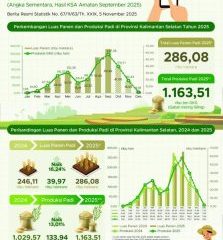 BANJARBARU, suluhbanua.news – Badan Pusat Statistik (BPS) Kalimantan Selatan (Kalsel) memperkirakan realisasi luas panen padi berdasarkan hasil Survei KSA, puncak panen padi pada 2025 bergeser satu...