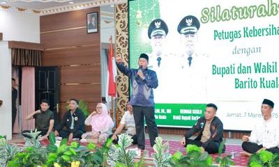 MARABAHAN, suluhbanua.news – Jumat (7/3/2025) malam, Bupati Barito Kuala, Dr. H. Bahrul Ilmi, S.H., M.H. bersilaturahmi dengan para petugas kebersihan di Aula Selidah Marabahan Pemkab Barito...